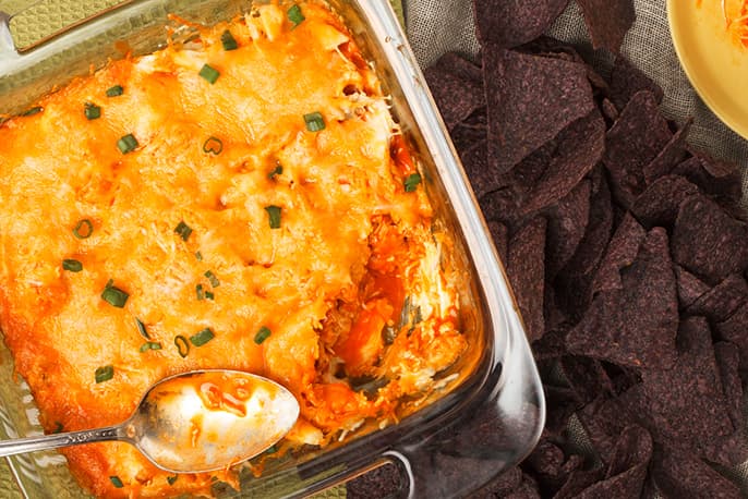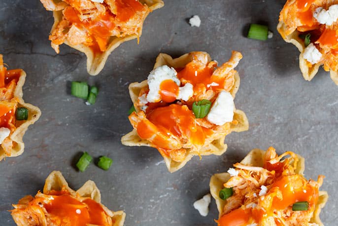 - Drizzle shells with the remaining Sweet Baby Ray's Buffalo Wing Sauce and sprinkle the remaining pepper jack cheese and crumbled blue cheese on top.